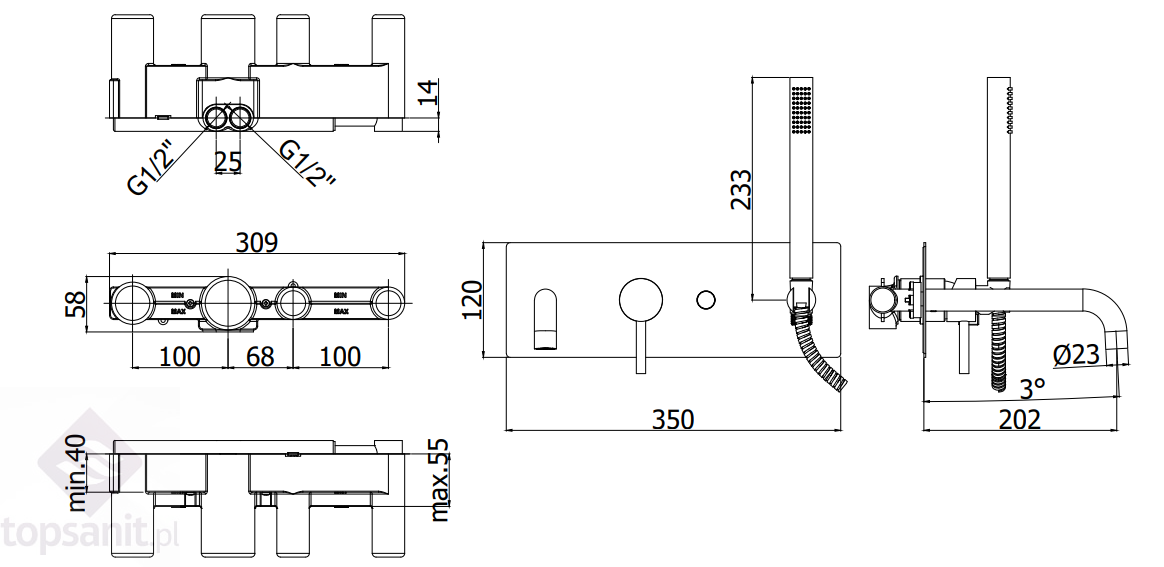 - 2 źródła wody ( wylewka oraz rączka natrysku )