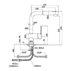 - zasięg wylewki: 21cm
