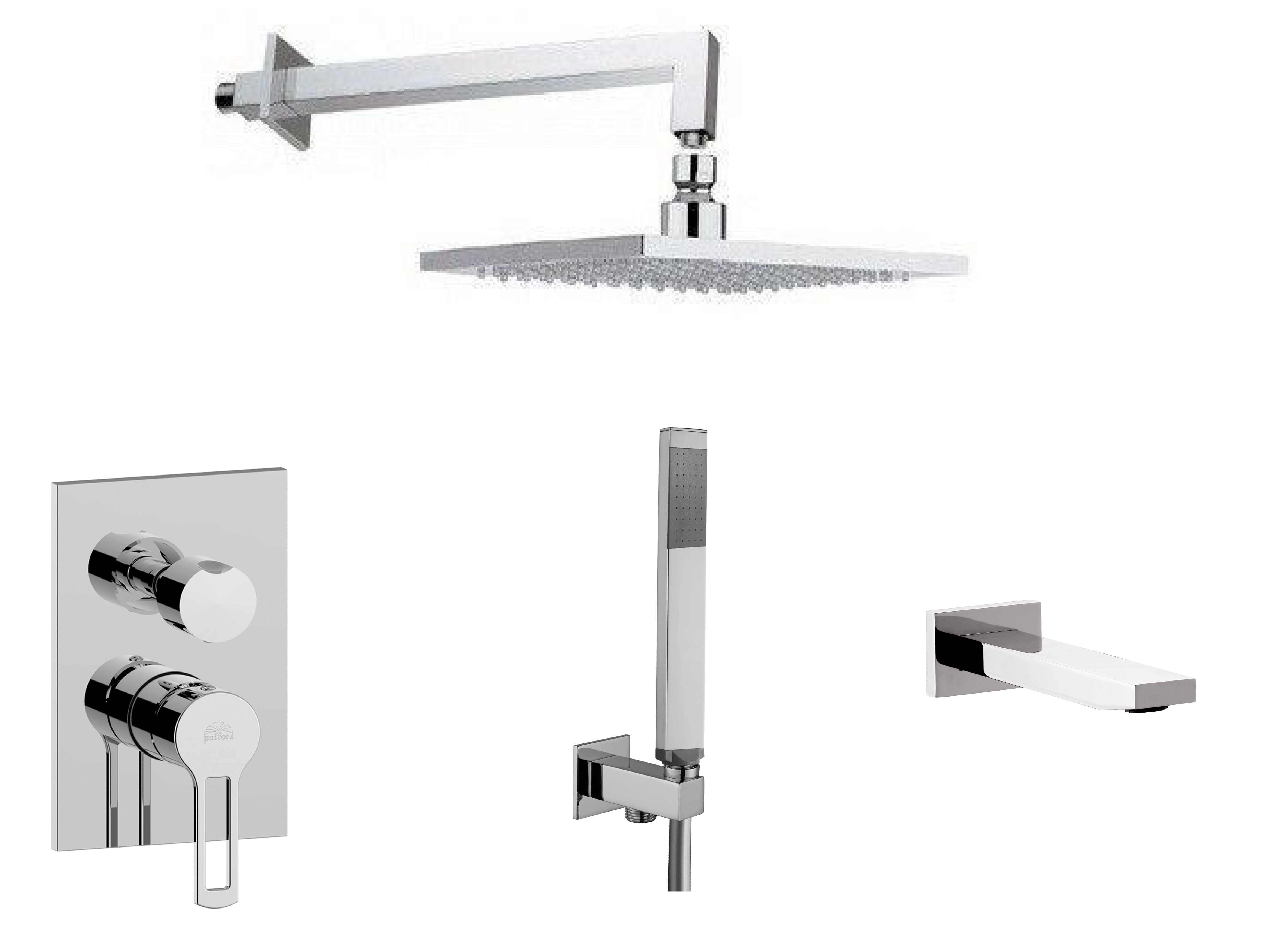 Paffoni RINGO zestaw podtynkowy wannowo-prysznicowy z deszczownicą 20x20 cm i wylewką wannową, czarny RIN019ZSCW3A.NO