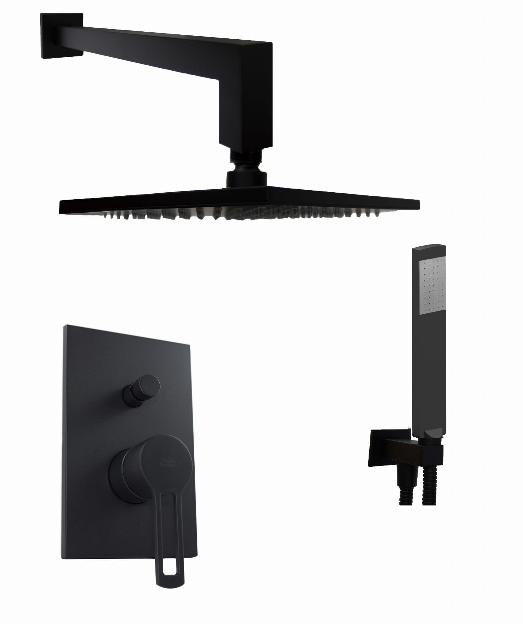 Czarny zestaw podtynkowy Paffoni RINGO z deszczownicą 30x30 cm, kolor czarny RIN015ZSC3E.NO (C06658NO + RIN015NO + ZDUP095NO)