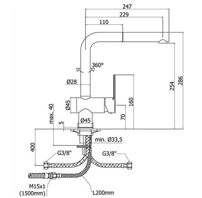 - zasięg wylewki: 22,9cm