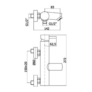 - w komplecie: bateria wannowa, rączka natrysku, uchwyt punktowy i wąż prysznicowy 150 cm,