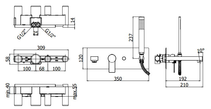 - zasięg wylewki: 192 mm