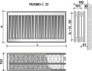 Purmo Compact C33 600x1000 mm grzejnik pokojowy boczne zasilanie, kolor biały C336001000