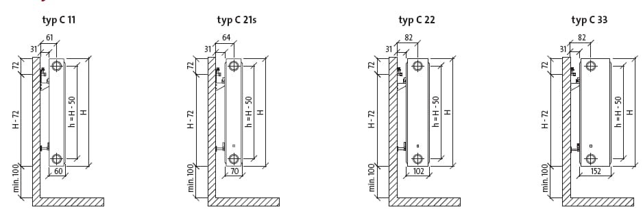 Uwaga! Grzejniki należy kompletować z zestawami podłączeniowymi.