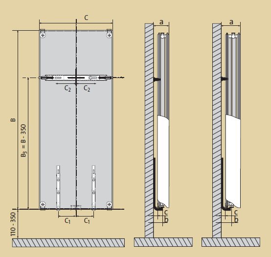 - wyposażenie podstawowe: odpowietrznik w komplecie z grzejnikiem, dwie osłony boczne, trzy korki, komplet zawieszeń ściennych
