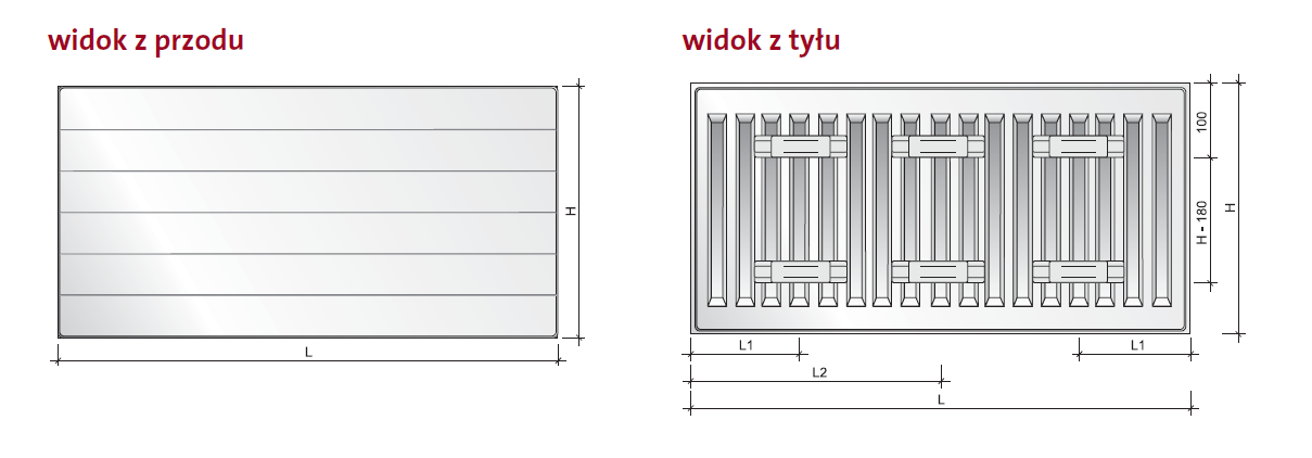 Cena grzejnika obejmuje: osłonę górną (grill), dwie osłony boczne, korek, odpowietrznik, komplet zawieszeń ściennych.