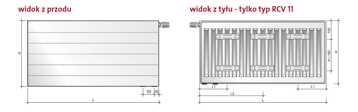 Cena grzejnika obejmuje: osłonę górną (grill), dwie osłony boczne, wkładkę zaworową podwójnej regulacji Oventrop, dwa korki, odpowietrznik, komplet zawieszeń ściennych.