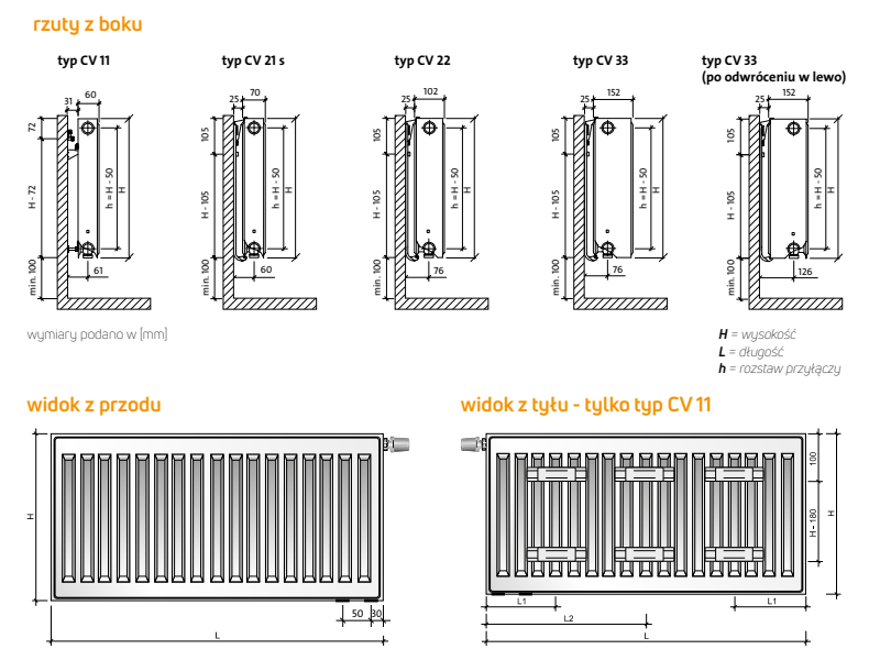 - typ produktu: grzejnik pokojowy zasilany od dołu,