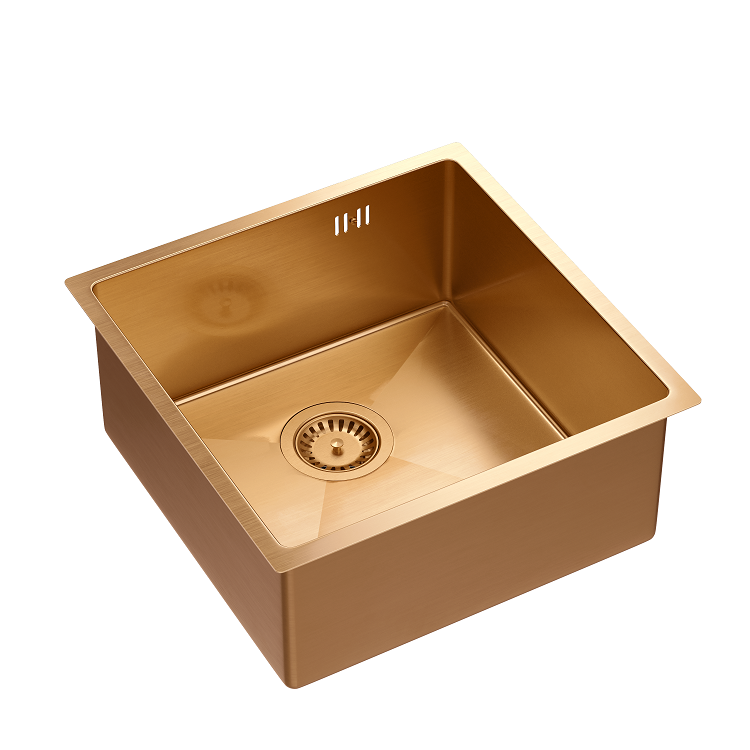 Quadron Anthony 50 stalowy zlewozmywak kuchenny 44x44cm 1-komora bez ociekacza, podwieszany lub wpuszczany kolor miedź PVD MF4444PVDBSC1