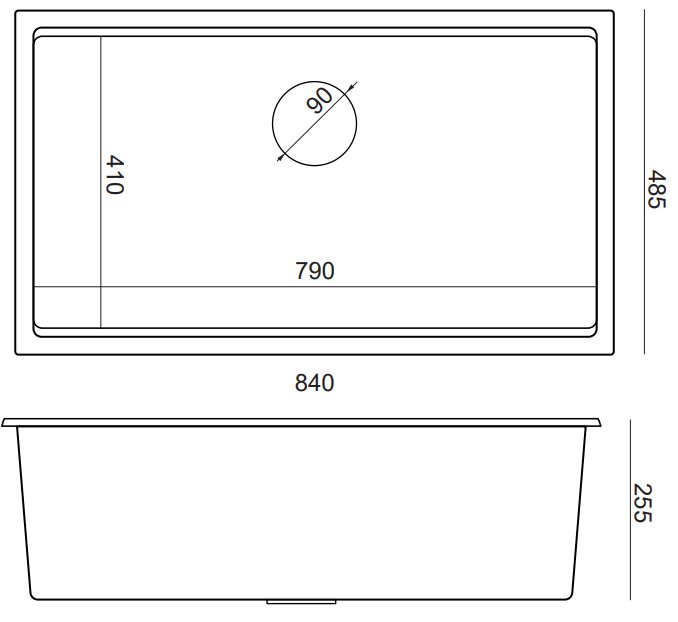 Zlew Quadron Clark 84 cm kolor onyx BM3319101U-BL-BS - dane techniczne