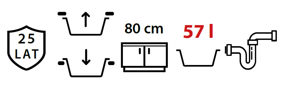 - Wymiary wycięcia w blacie: wpuszczany - 82x46,5 cm,