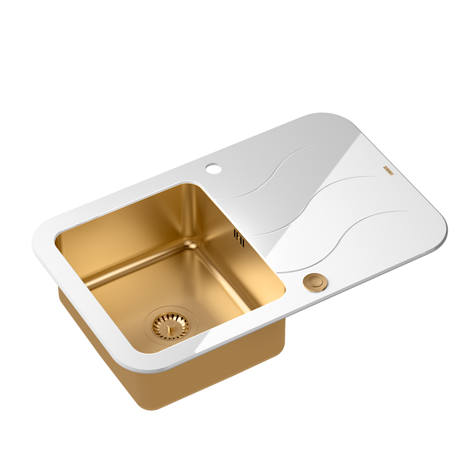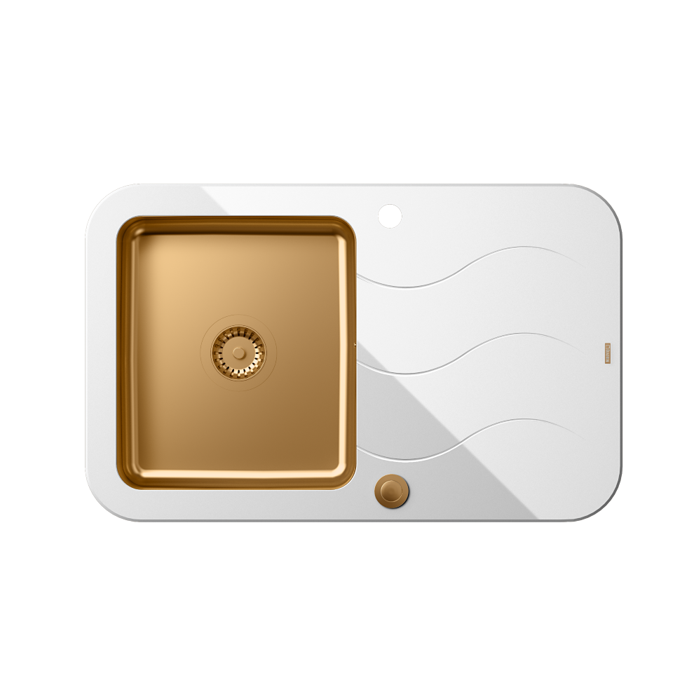 Quadron Glen 211 HardQ komora stalowa PVD miedziana z białym blatem szklanym z syfonem Push 2 Open (780x500/R35) HB8078SB3FC1_P2O - cechy produktu: