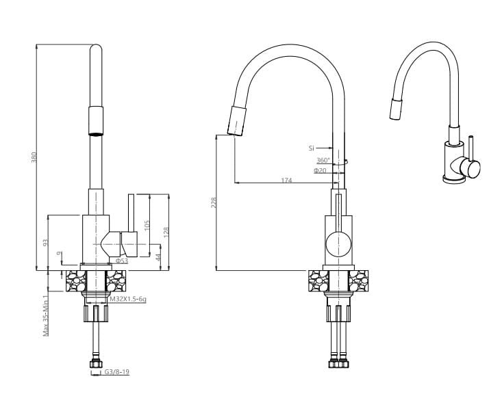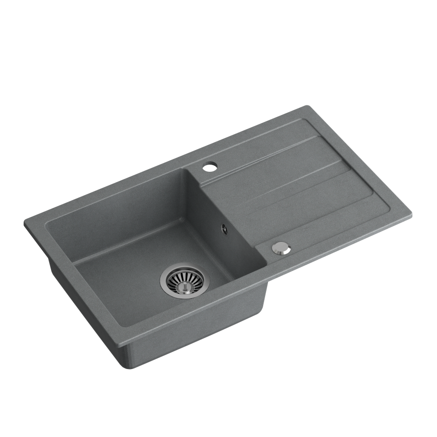 Quadron READY- MAX SZARY zlewozmywak granitowy 1-k z/o (77x44x17,5) + bateria z elastyczną wylewką + dozownik stalowy + syfon TQ7744RMSZ - cechy produktu: