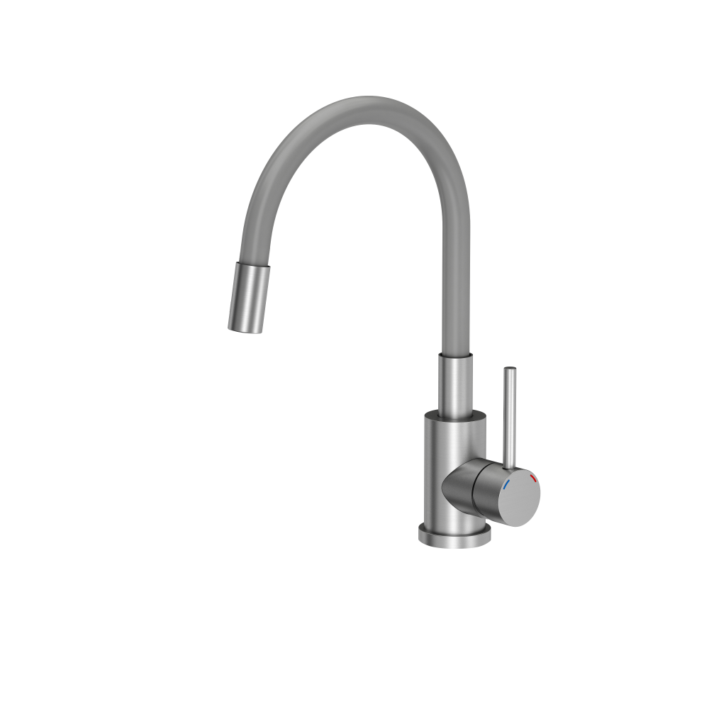 Quadron Ready-Max SZARY zlewozmywak granitowy 1-k z/o (77x44x17,5) + bateria z elastyczną wylewką + dozownik stalowy + syfon TQ7744RMSZ