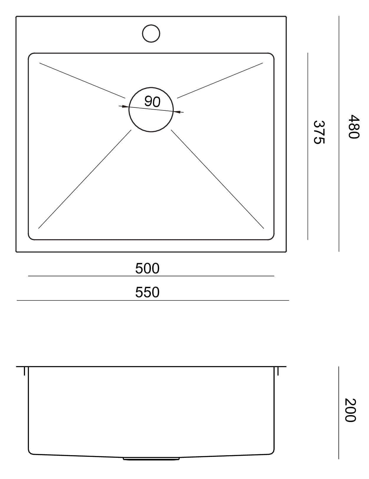 Zlew miedziany do szafki 60 cm Quadron Russel 110 - wymiary