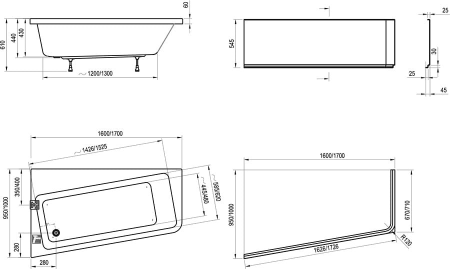 Ravak 10° wanna asymetryczna 170x100 cm lewa biała C811000000