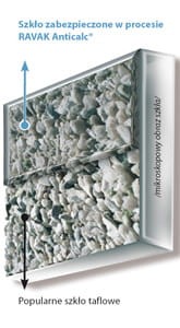 - Krople spadając na powłokę AntiCalc spływają szybciej nie powodując tworzenia się trwałych osadów.