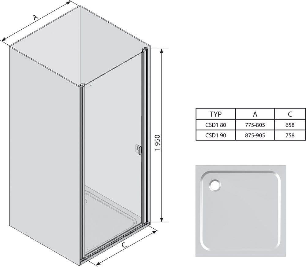 Drzwi prysznicowe RAVAK CHROME CSD1-80, otwierane 0QV40C00Z1: