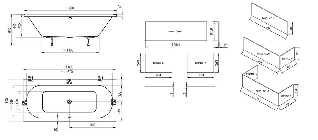 - do kompletowania z: stelażem, panelem przednim i bocznym, kompletem odpływowym, baterią wannową oraz parawanem nawannowym.