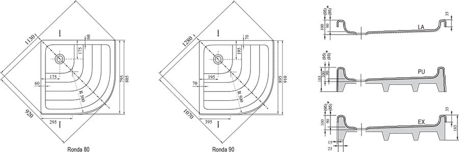 - brodzik typu PU tj. zintegrowany z panelem, samonośny