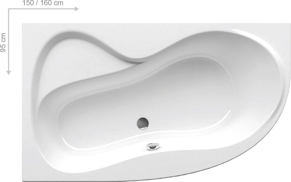 Rosa 95 to oszczędna w wymiarach zewnętrznych wanna asymetryczna, która zmieści się nawet w małej łazience. Niezwykle komfortowa wanna do której można dokompletować parawan w celu stworzenia przestronnej kabiny.
