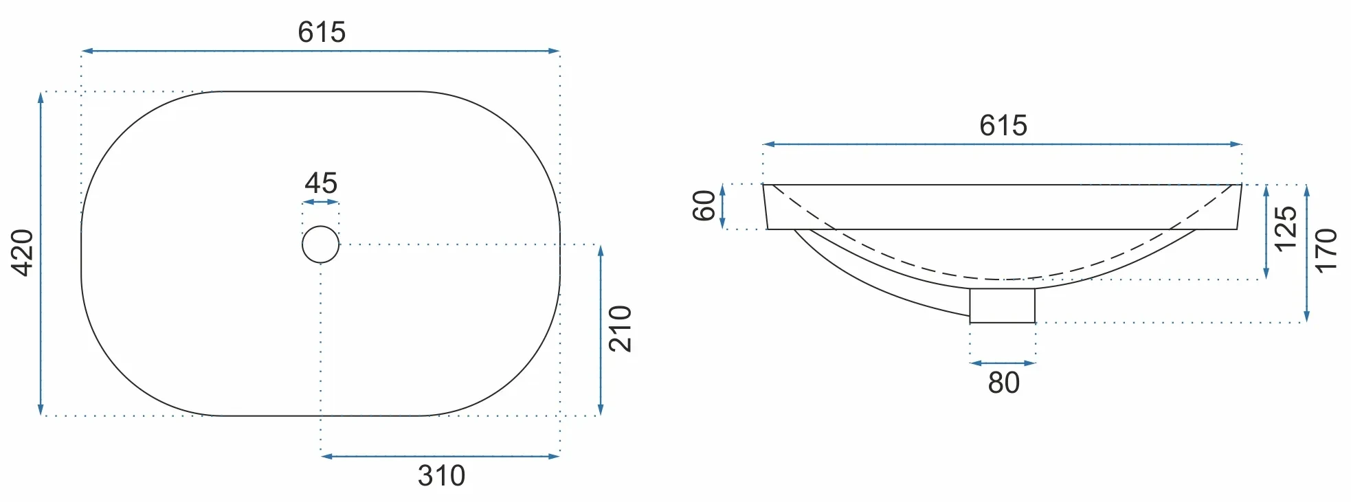 Umywalka wpuszczana 61 cm, kolor biały- wymiary: