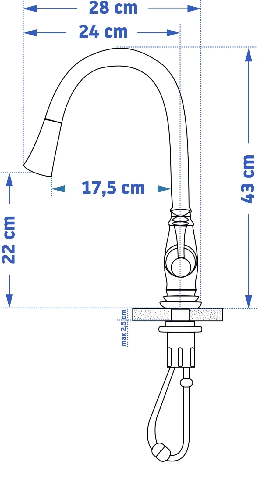 - zasięg wylewki: 17,5 cm,