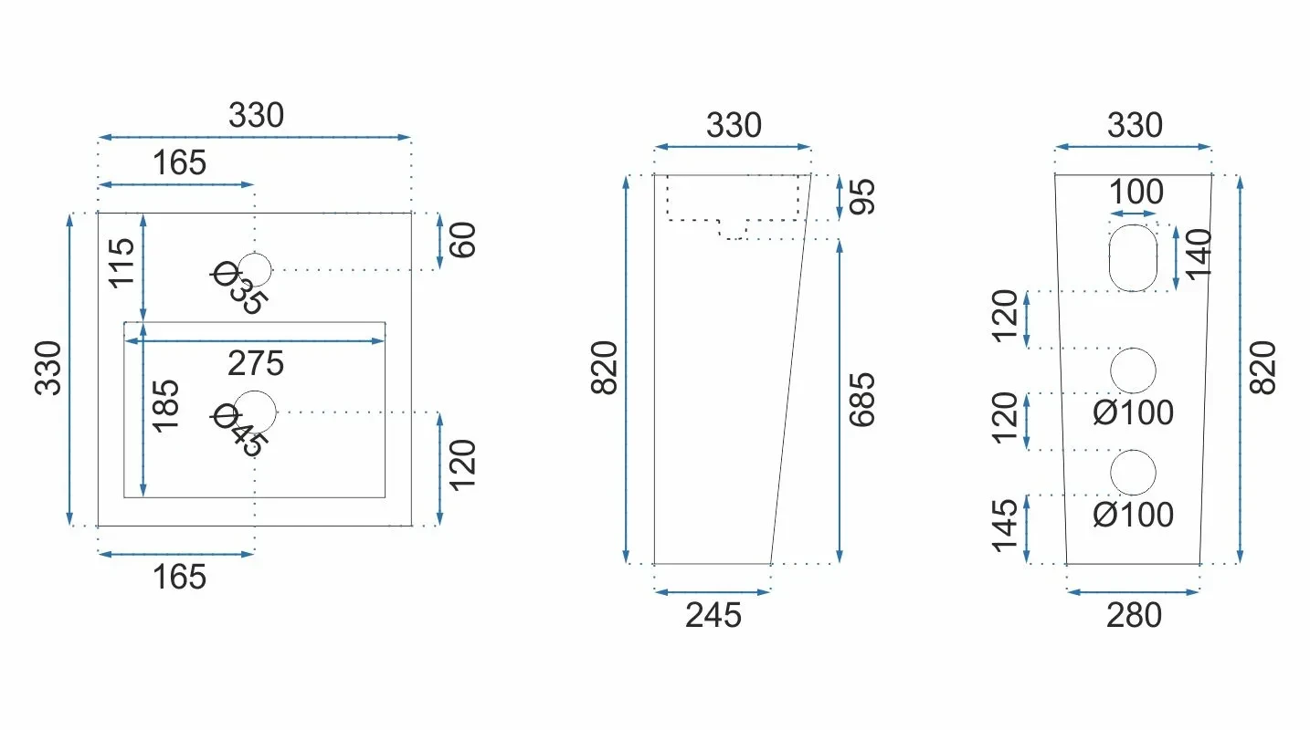 Kamila Black umywalka wolnostojąca Rea- wymiary: