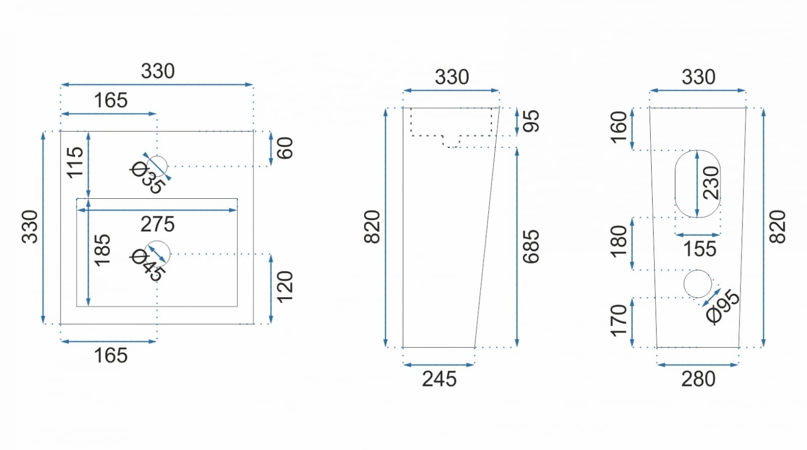 Kamilaumywalka wolnostojąca Rea- wymiary: