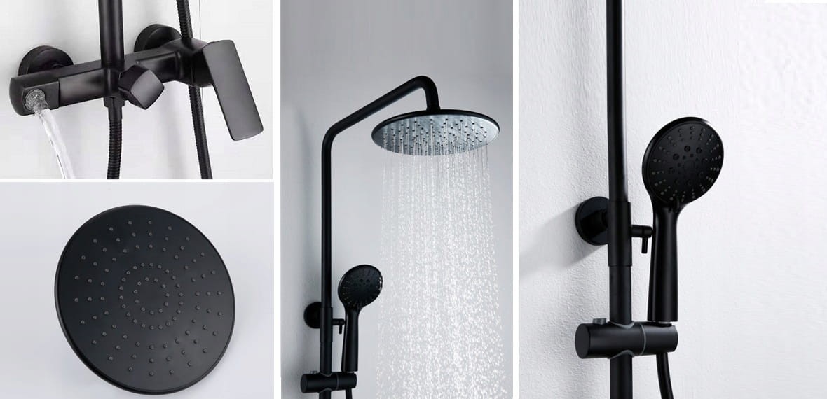 Cechy produktu - Komplet natryskowy z deszczownicą Rea Roger Black Mat REA-P8003 wylewka wannowa, kolor czarny mat