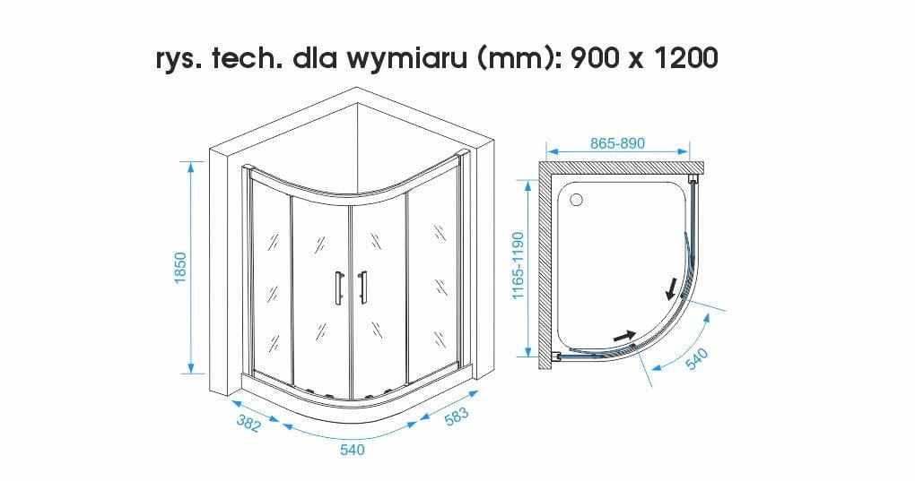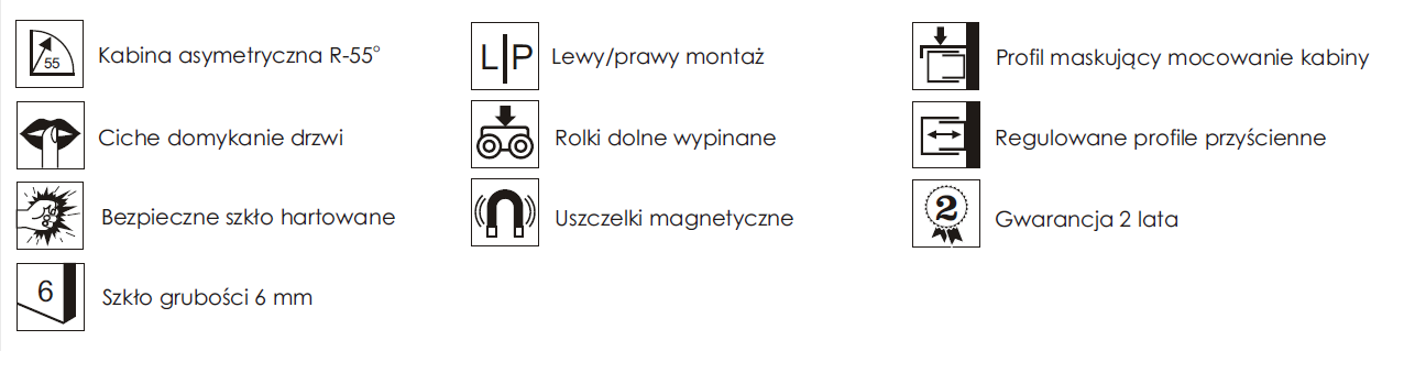 Rodos Max Kabina asymetryczna 120x90x185 drwi przesuwne szkło dymione grigio QF92-KRM20