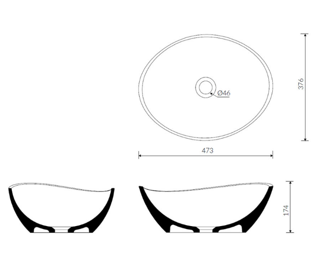 Cechy produktu - Umywalka nablatowa Sanitti Tre 47x37 cm, dolomitowa (Mineralcast) kolor biały (P_U_171_01_0473)