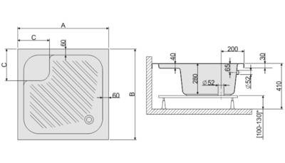 Brodzik prostokątny Bzs/CL o głębokości 28 cm, wykonany jest z akrylu sanitarnego.