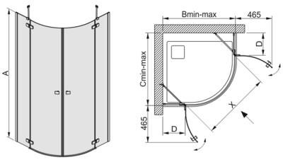 Drzwi otwierane są za pomocą eleganckich zawiasów o nowoczesnej stylistyce, mocowanych na płasko od wewnątrz i zapewniających łatwe otwieranie oraz czyszczenie. Szczelność zapewniają transparentne uszczelki na ściankach i drzwiach, chromowana listwa mocowana na brodziku oraz uszczelka magnetyczna. Wygodne otwieranie drzwi umożliwiają eleganckie chromowane uchwyty. Regulowane profile przyścienne pozwalają na zniwelowanie krzywizny ściany. Wysokość 195 cm zapewnia wygodę kąpieli, szczególnie osobom o wysokim wzroście.