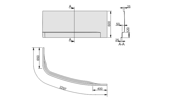 Obudowa prawa OWAP/FREE 105 x 155do wanny asymetrycznej WAP/FREE 100x160, wykonana jest z akrylu sanitarnego. Jest komplementarnym produktem do wanny i tworzy z nią harmonijną całość.