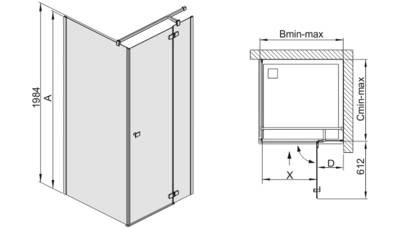 Uwaga! Dokładne wymiary kabiny prysznicowej opisane są powyżej (zakresy regulacji).