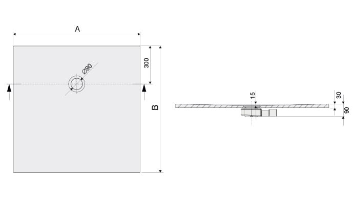 Sanplast Open Mineral brodzik kwadratowy 90x90x1,5 cm, kolor biały 645-430-003-001-000
