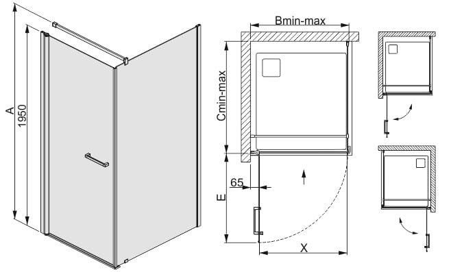 Nowoczesne kabiny prysznicowe narożne prostokątne z drzwiami skrzydłowymi KNDJ/PRIII posiadają wypełnienie z bezpiecznego szkła hartowanego o grubości 6 mm. Konstrukcja o wysokości 195 cm wyposażona jest w drzwi z mechanizmem unoszenia zapewniającym wygodne otwieranie i szczelne zamykanie kabiny, uszczelkę magnetyczną, zamocowane na dolnych krawędziach drzwi transparentne uszczelki oraz chromowaną listwę. Wszystko to zapewnia odprowadzenie wody z powierzchni szkła wewnątrz kabiny i zabezpiecza przed rozpryskiwaniem poza jej obszar. Wygodne otwieranie drzwi umożliwia funkcjonalny chromowany uchwyt w kolorze profili. Regulowane profile przyścienne pozwalają na zniwelowanie krzywizny ściany. Kabiny posiadają chromowane wsporniki stabilizujące ich konstrukcję. Produkty są uniwersalne – możliwość montażu w wersji lewej lub prawej.