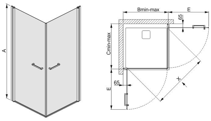 Nowoczesne kabiny prysznicowe narożne kwadratowe KN2/PRIII z drzwiami skrzydłowymi jednoelementowymi wykonane są z bezpiecznego szkła hartowanego o grubości 6 mm. Konstrukcja o wysokości 195 cm wyposażona jest w drzwi z mechanizmem unoszenia zapewniającym wygodne otwieranie i szczelne zamykanie kabiny, uszczelkę magnetyczną, zamocowane na dolnych krawędziach drzwi transparentne uszczelki oraz chromowaną listwę. Wszystko to zapewnia odprowadzenie wody z powierzchni szkła wewnątrz kabiny i zabezpiecza przed rozpryskiwaniem poza jej obszar. Wygodne otwieranie drzwi - również do środka, umożliwiają funkcjonalne chromowane uchwyty. Regulowane profile przyścienne pozwalają na zniwelowanie krzywizny ściany.