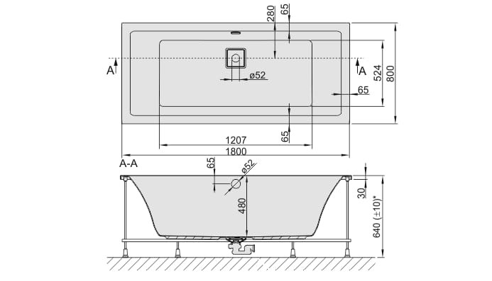Wanna prostokątna Sanplast SPACE LINE z odpływem umieszczonym na środku WP/SPACE 80 x180 +SP biew 610-100-0260-01-000