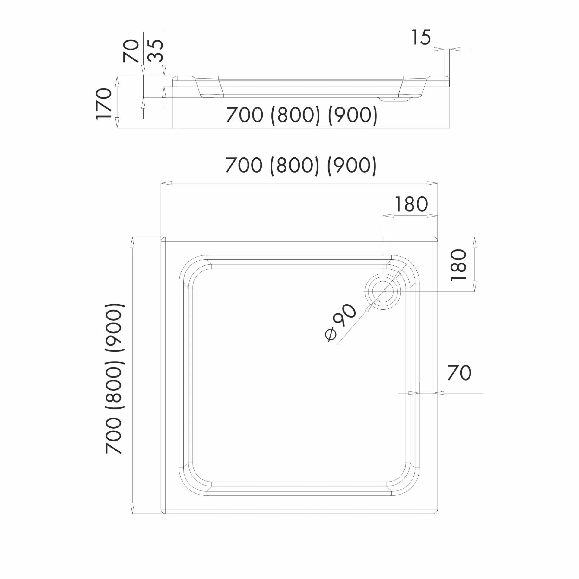 Brodzik Sched-Pol Grando Plus 80x80x17cm 3.0124- cechy produktu: