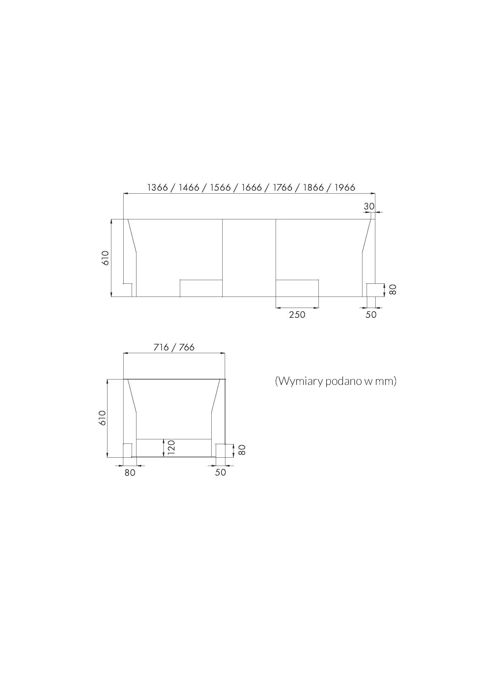 - do wanien prostokątnych o szerokości 75cm,