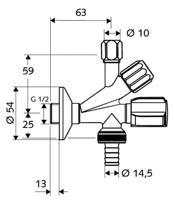 Zawór kombinowany Schell kątowy SCHELL z filtrem 1/2 x 3/8 x 3/4", 035600699