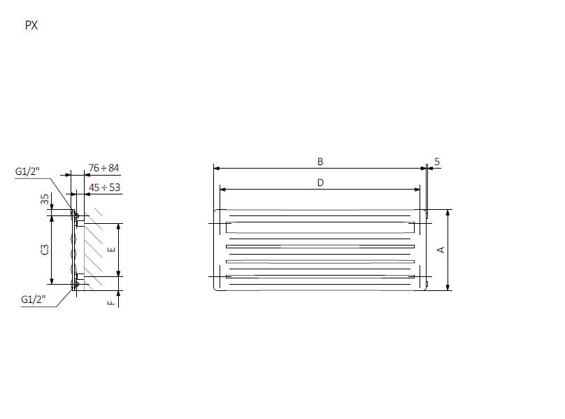 - podłączenie SX – standardowe podłączenie dolne o rozstawie zależnym od wymiarów grzejnika. Najczęściej 3 cm mniej niż szerokość grzejnika,