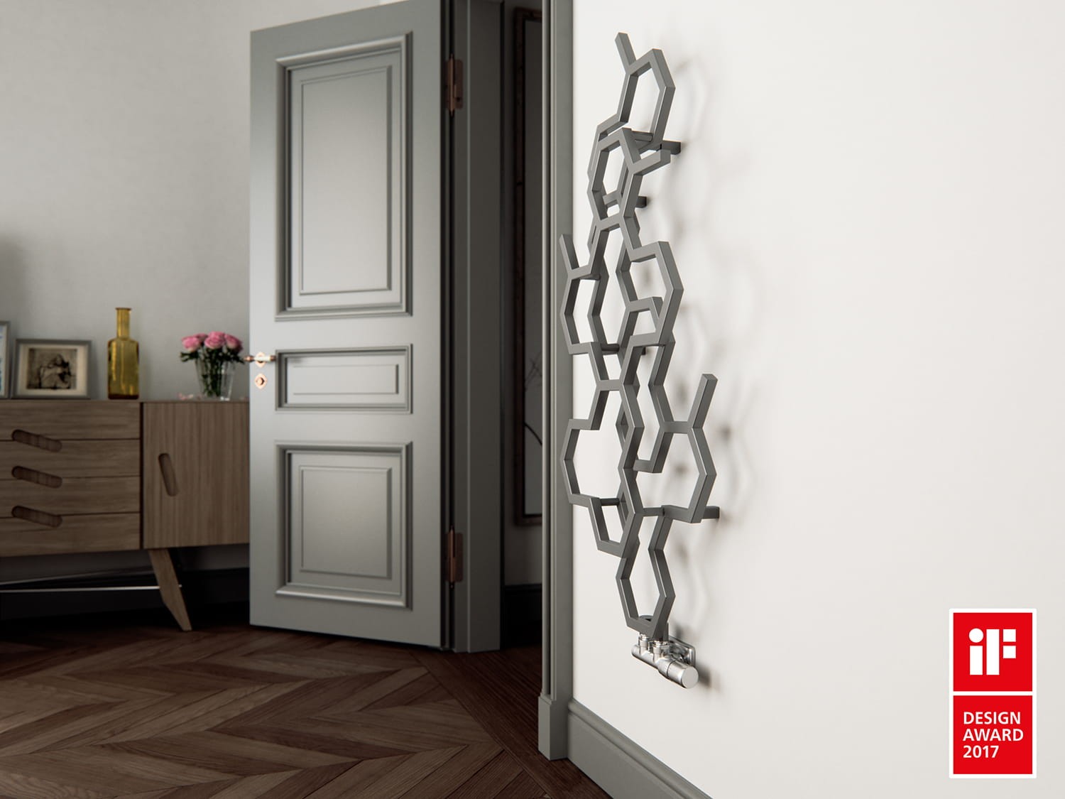 Grzejnik dekoracyjny Terma HEX to heksagonalne moduły w orientacji pionowej lub poziomej. Wyjątkowy i nietuzinkowy wzór grzejników Terma HEX został nagrodzony licznymi krajowymi i światowymi nagrodami takimi jak "iF Design Award 2017", czy "Must Have 2017".