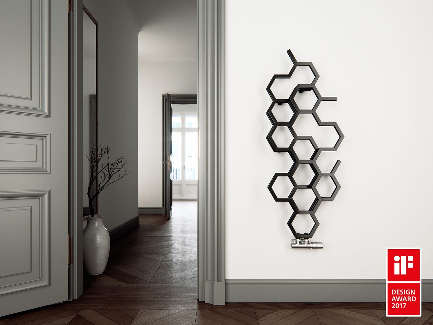 Grzejnik dekoracyjny Terma HEX to heksagonalne moduły w orientacji pionowej lub poziomej. Wyjątkowy i nietuzinkowy wzór grzejników Terma HEX został nagrodzony licznymi krajowymi i światowymi nagrodami takimi jak "iF Design Award 2017", czy "Must Have 2017".