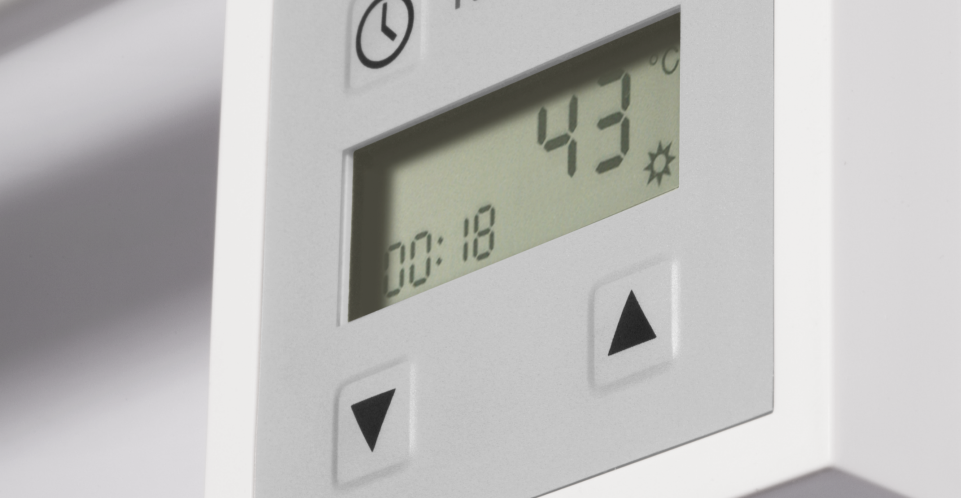 - Możliwość regulacji temperatury grzejnika w zakresie 30-60°C z krokiem co 1°C ,