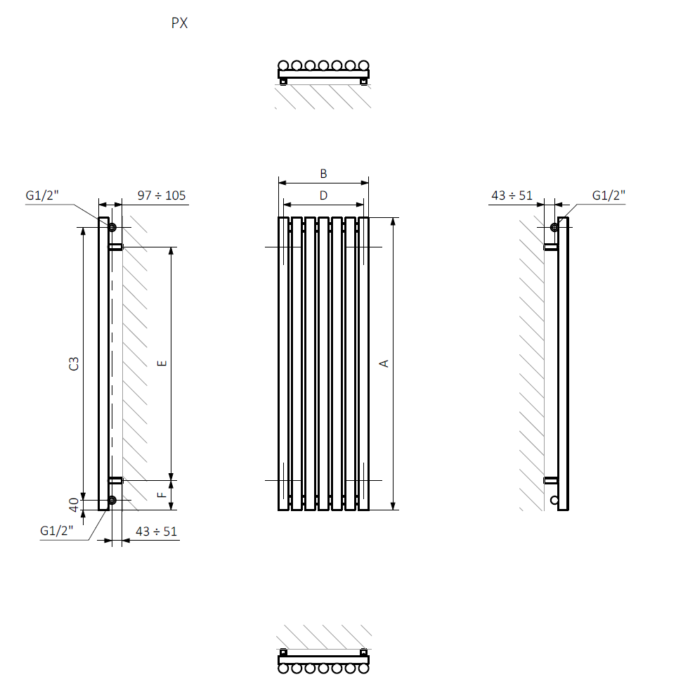 - podłączenie SX – standardowe podłączenie dolne o rozstawie zależnym od wymiarów grzejnika. Najczęściej 3 cm mniej niż szerokość grzejnika,