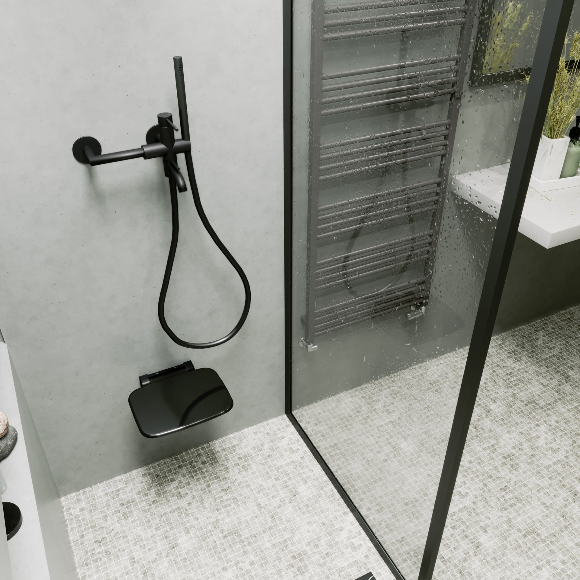 Terma siedzisko prysznicowe, kolor czarny, TGSCZ001